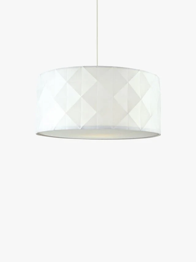 The Aisha hanging shade has a geometric bevelled design in a cotton fabric. The Aisha is perfect for a warm glow within a bedroom or lounge, they comfortably fit into any space. This hanging shade comes complete with a cotton diffuser but would need to be installed onto a hanging suspension*. *Shade supplied only. Suspension cable sold separately Umage Rosette White.
