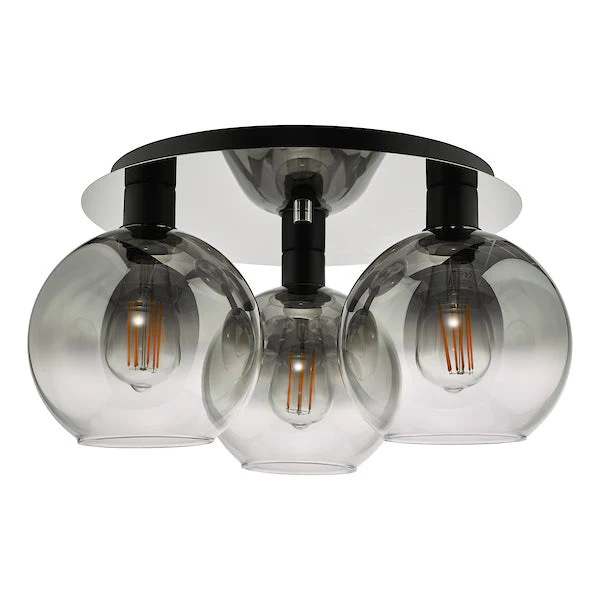 The Lycia 3-light flush excels in living rooms with lower ceilings where matt black adds industrial sophistication, in bedrooms where ombre glass provides warm ambient lighting, or in dining areas where statement proportions create dramatic focal points. The matt black and ombre smoked glass combination works beautifully in modern interiors, industrial-chic living spaces, contemporary bedrooms, and transitional homes seeking bold ceiling lighting with practical clearance.