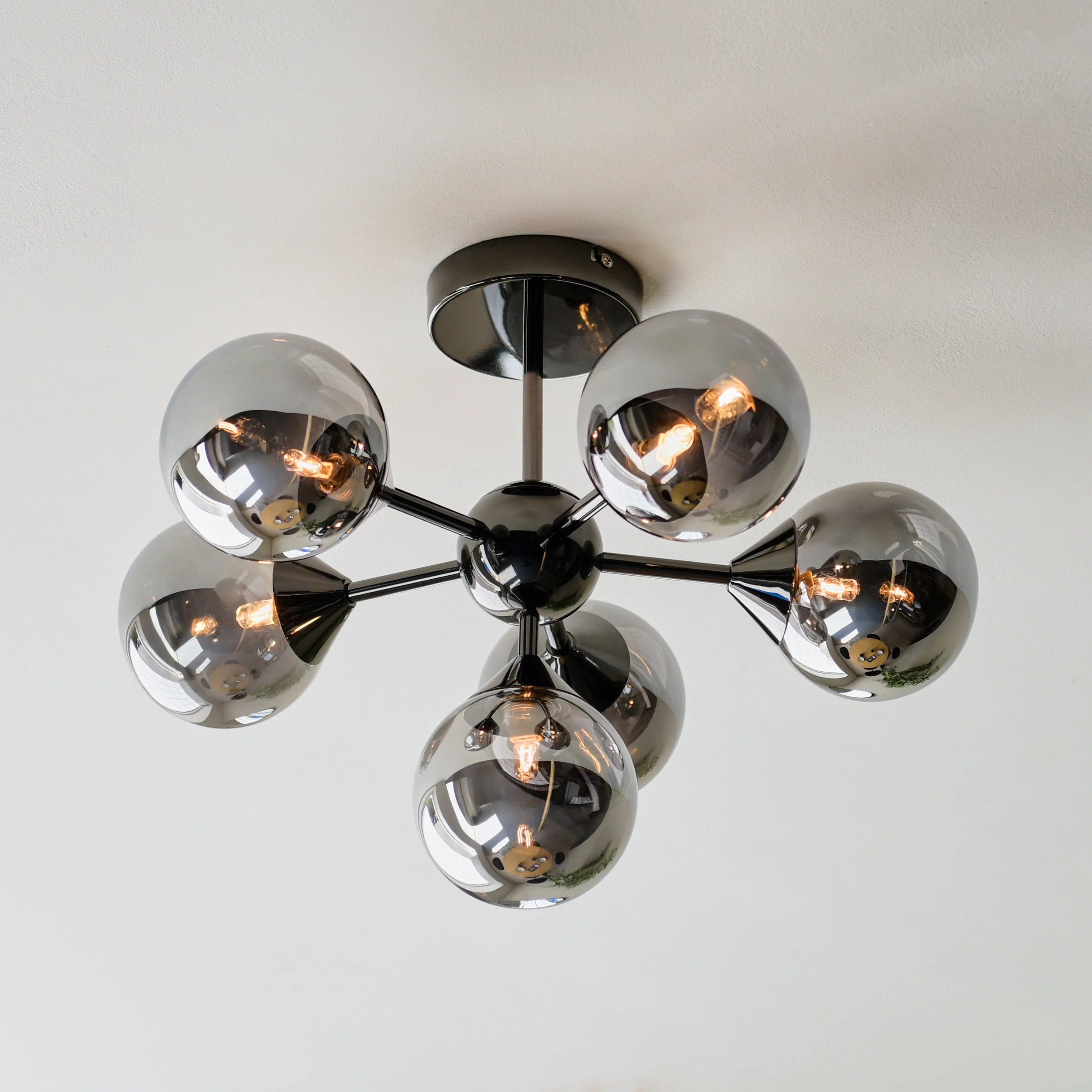 Endon Oscar 6lt Semi Flush Black chrome & Smoked Glass—