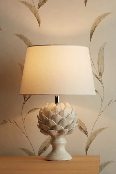 The Laura Ashley Artichoke ceramic table lamp brings botanical elegance with its distinctive artichoke-inspired ceramic base and refined styling. Featuring sculptural botanical detailing with layered petal texture, this statement lamp creates warm, inviting illumination perfect for bedrooms, living rooms, and console tables, combining nature-inspired design with artisan craftsmanship that adds organic character and tactile interest to traditional and contemporary interiors.