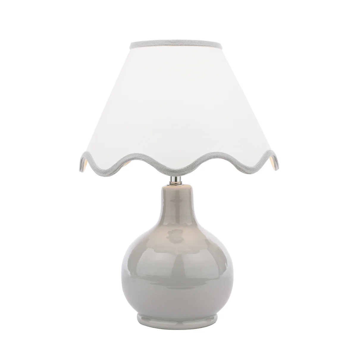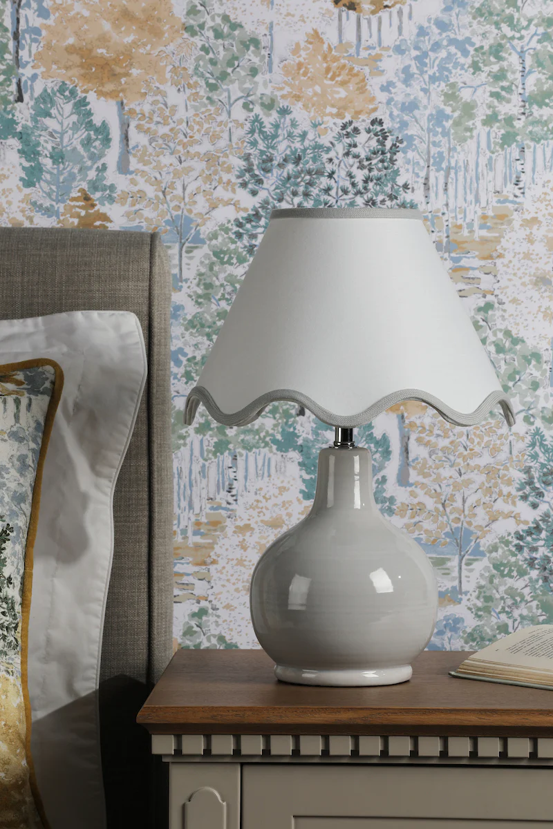 The Laura Ashley Bramhope table lamp brings refined elegance with its sleek grey ceramic base and soft fabric shade. Featuring contemporary styling with timeless appeal, this versatile lamp creates warm, ambient illumination perfect for living rooms, bedrooms, and home offices, combining sophisticated neutral tones with quality craftsmanship that blends seamlessly with modern and classic interiors.