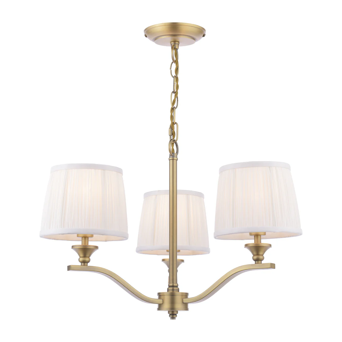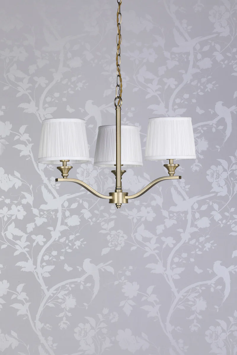 The Hemsley 3 light armed pendant excels over dining tables where warm brass creates inviting ambience, in bedrooms where soft ivory shades add romantic character, or in living rooms where traditional styling provides classic sophistication. The matt antique brass works beautifully in heritage interiors, traditional dining rooms, country-style bedrooms, and contemporary spaces seeking timeless metallic accents with elegant fabric shades.