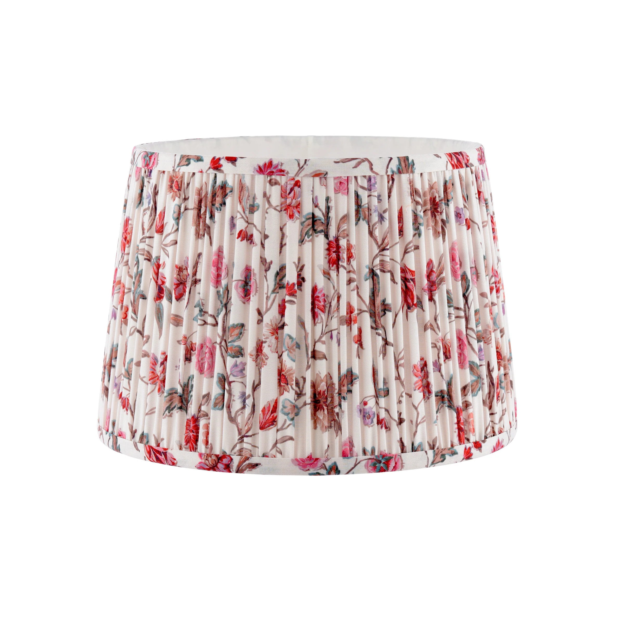 Crafted by Laura Ashley with attention to timeless detailing, the Lingmell Trail shade showcases beautifully crafted design with delicate Lingmell print on cream cotton and classic 12-inch pleated styling. Easy-Fit shade with universal shade ring and reversible gimbal for table lamps, floor lamps, and ceiling fittings. Requires 1 x E27 bulb (not included, max 60W, LED E27 recommended).