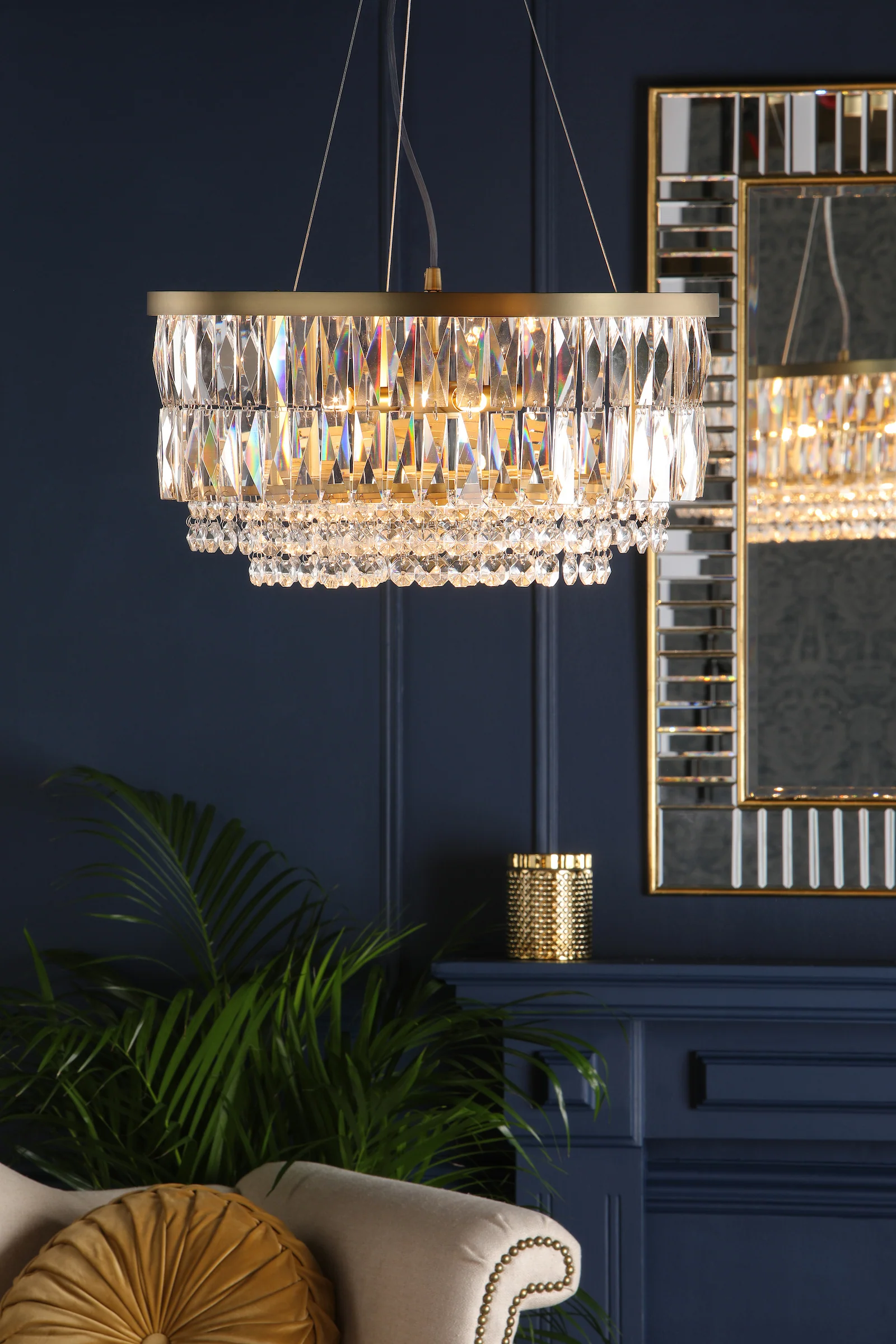 - Faceted glass crystals – Beautifully disperse light to create sparkling ambient effects