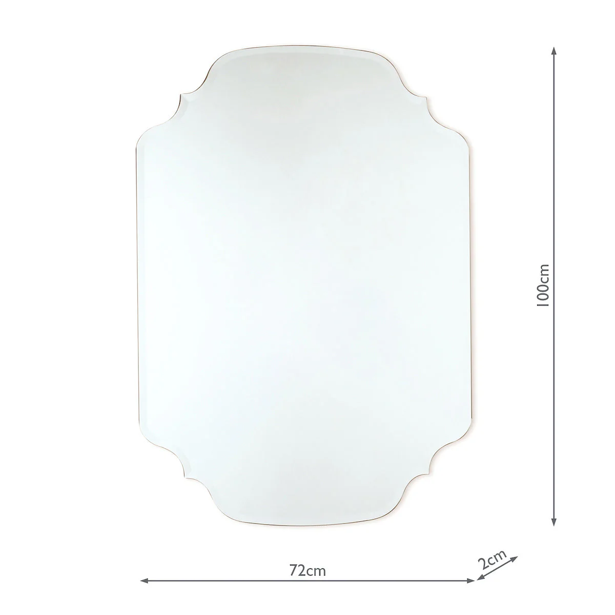 The Rochelle rectangle mirror excels in bedrooms above dressers where the shaped corners add romantic elegance, in dining rooms where the bevelled edge creates luxurious reflections, or in hallways where the versatile hanging options suit any space. The frameless design coordinates beautifully with traditional and contemporary interiors. Not suitable for bathroom or outdoor use.