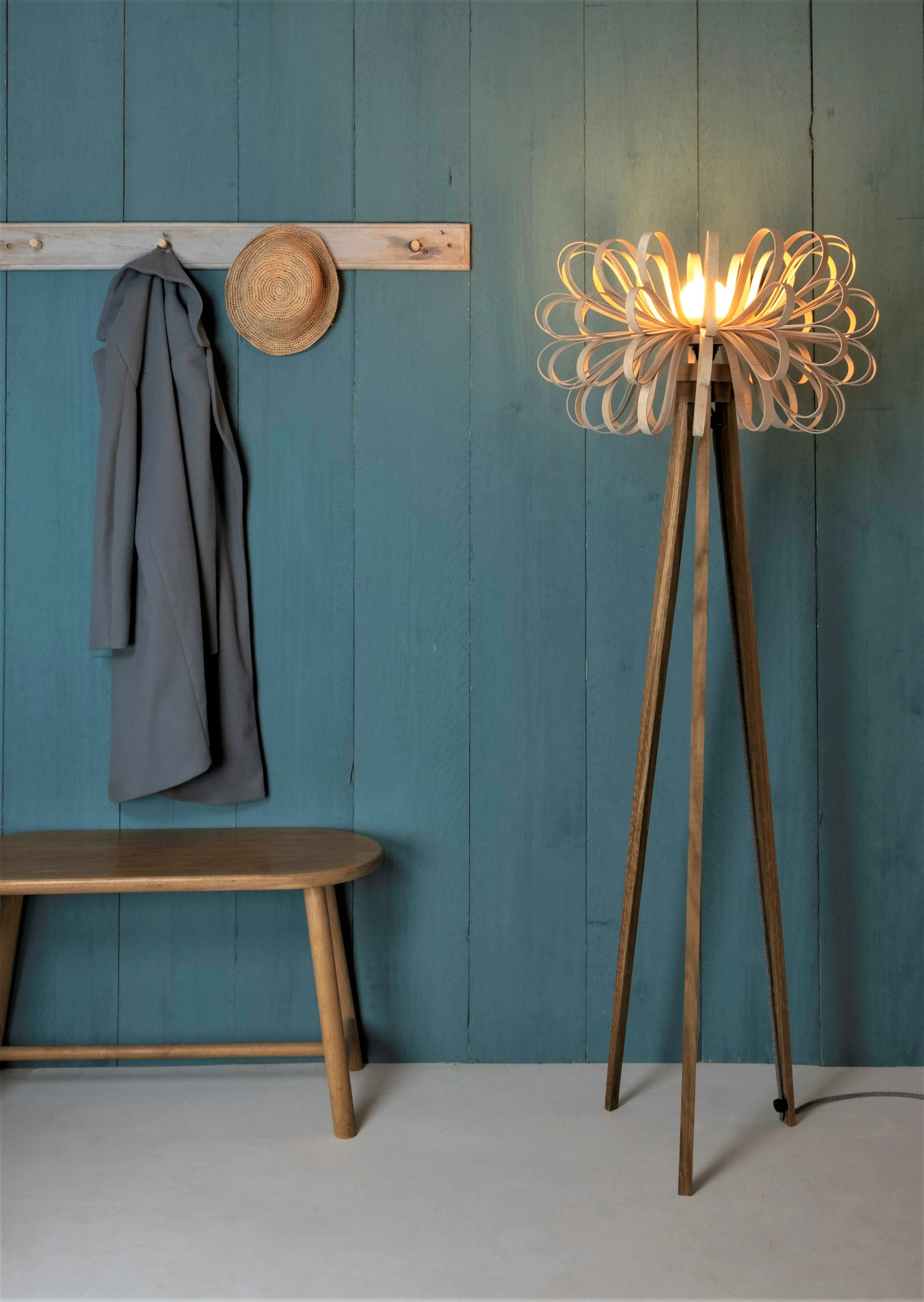 Each Loopie floor lamp is individually made by Cornish Lighting Designer Stuart Lamble in his Devon-based workshop. These artisan pieces are crafted with meticulous attention to detail, with every birch plywood loop hand-cut and carefully arranged to create the distinctive playful form. This is not mass-produced lighting – each lamp represents genuine British craftsmanship and the dedication of a skilled lighting designer.